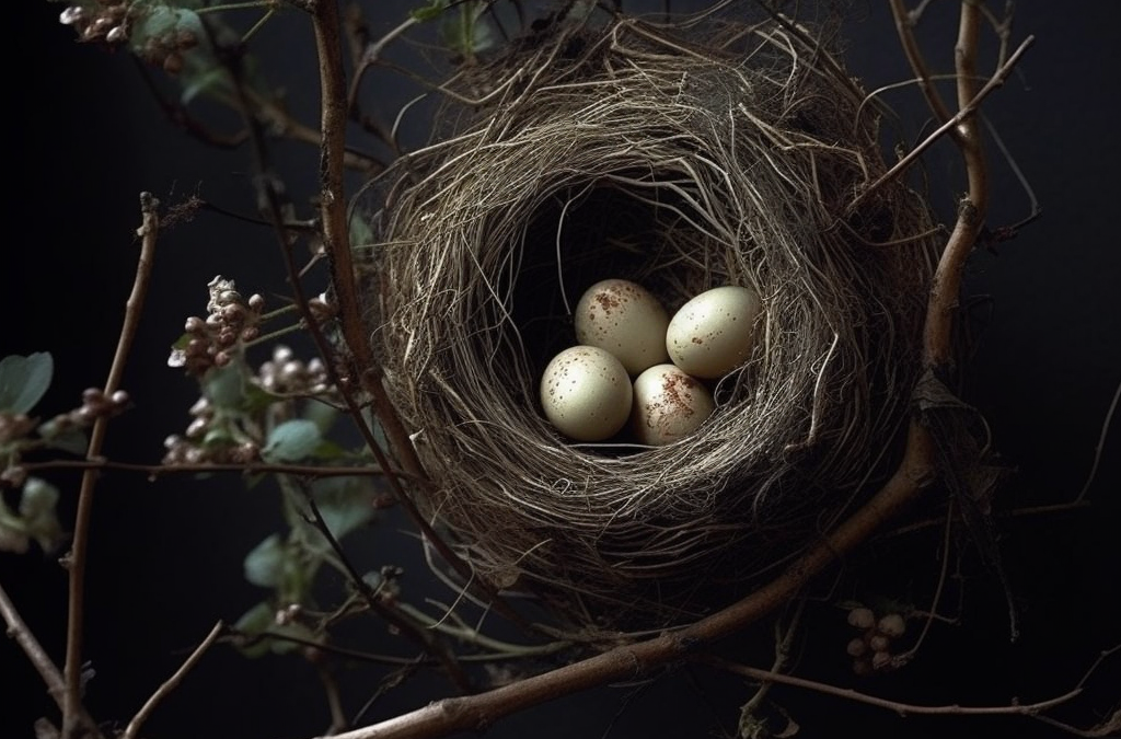 A gentle breeze whispered through the branches, making the nest sway ever so slightly. The intertwining twigs and leaves, woven with painstaking precision, held firm against the wind’s caress. Within the haven, tiny speckled eggs lay nestled, their fragile shells harboring the promise of new life.